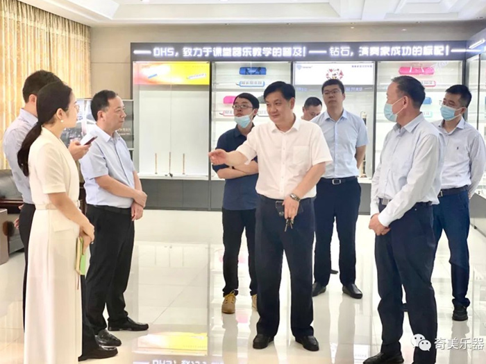 6月22日上午,中國樂器協會常務副理事長孫瑞勇在靖江市城南園區黨委書記楊曉波的陪同下,一行蒞臨奇美公司調研指導,奇美公司董事長張龍貴熱情接待。